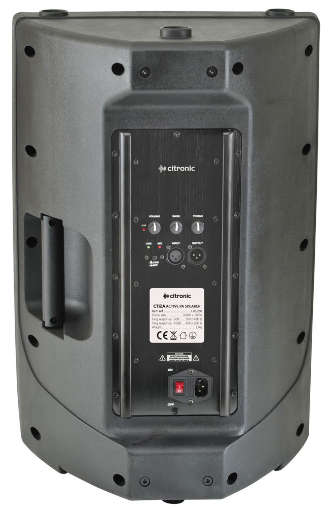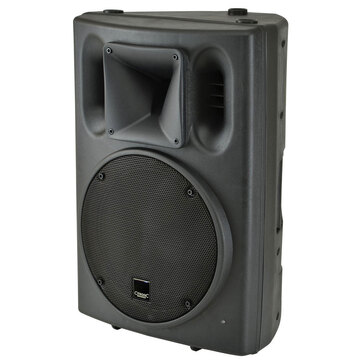 The system provides a superb full range sound suitable for small and medium sized venues, making them ideal for mobile DJs, live sound reinforcement and PA installations. The bi-amped cabinets feature bass, treble and volume controls, housed in a trapezoidal shockproof ABS plastic enclosure with rigid steel grille.