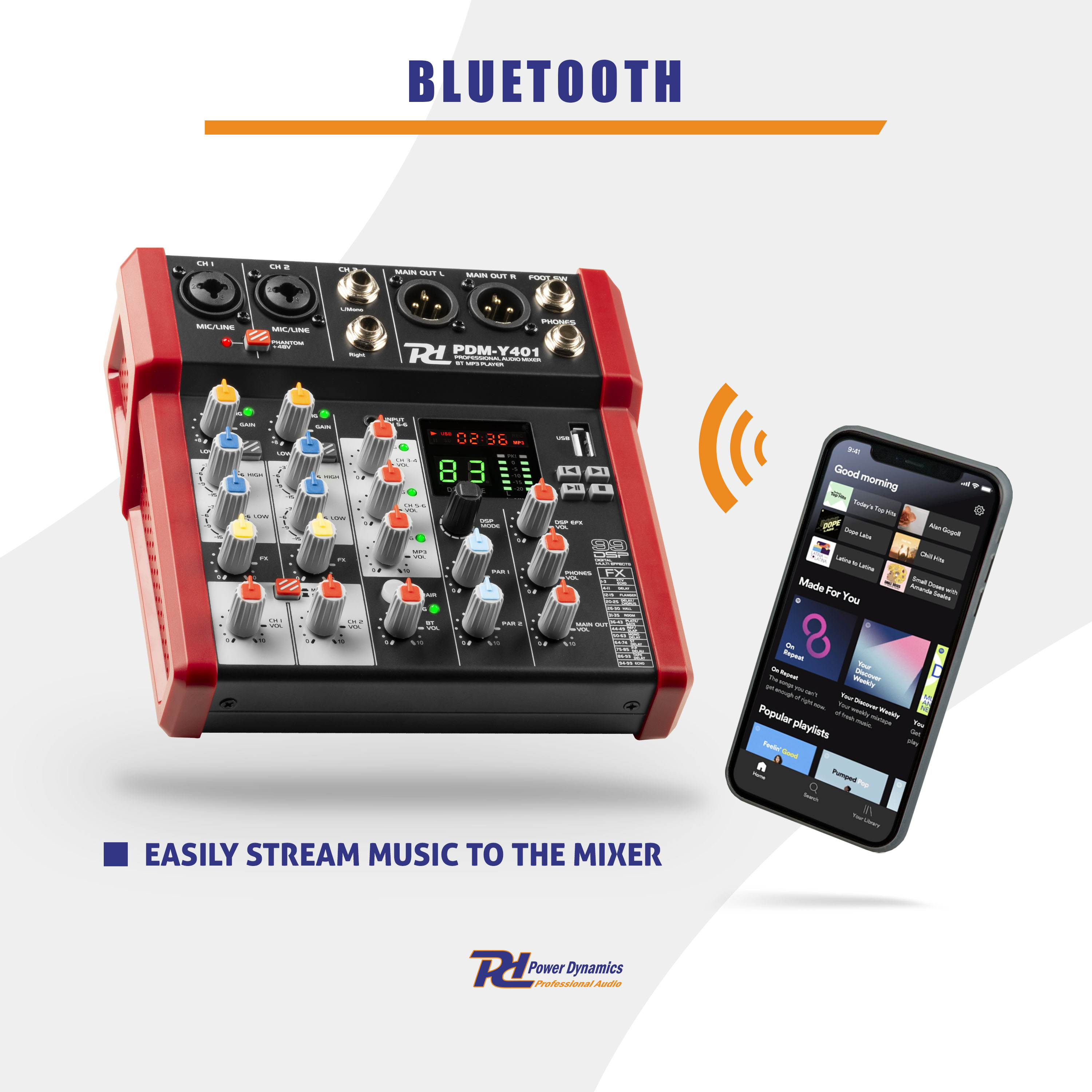 The PDM-Y mixers are flexible and efficient compact music mixers suitable for home music recording, webcasting, singing, parties and many other applications. Featuring versatile channels and digital audio streaming capabilities via BT, the PDM-Y mixers encompass a wide array of features to enhance any party or event.
