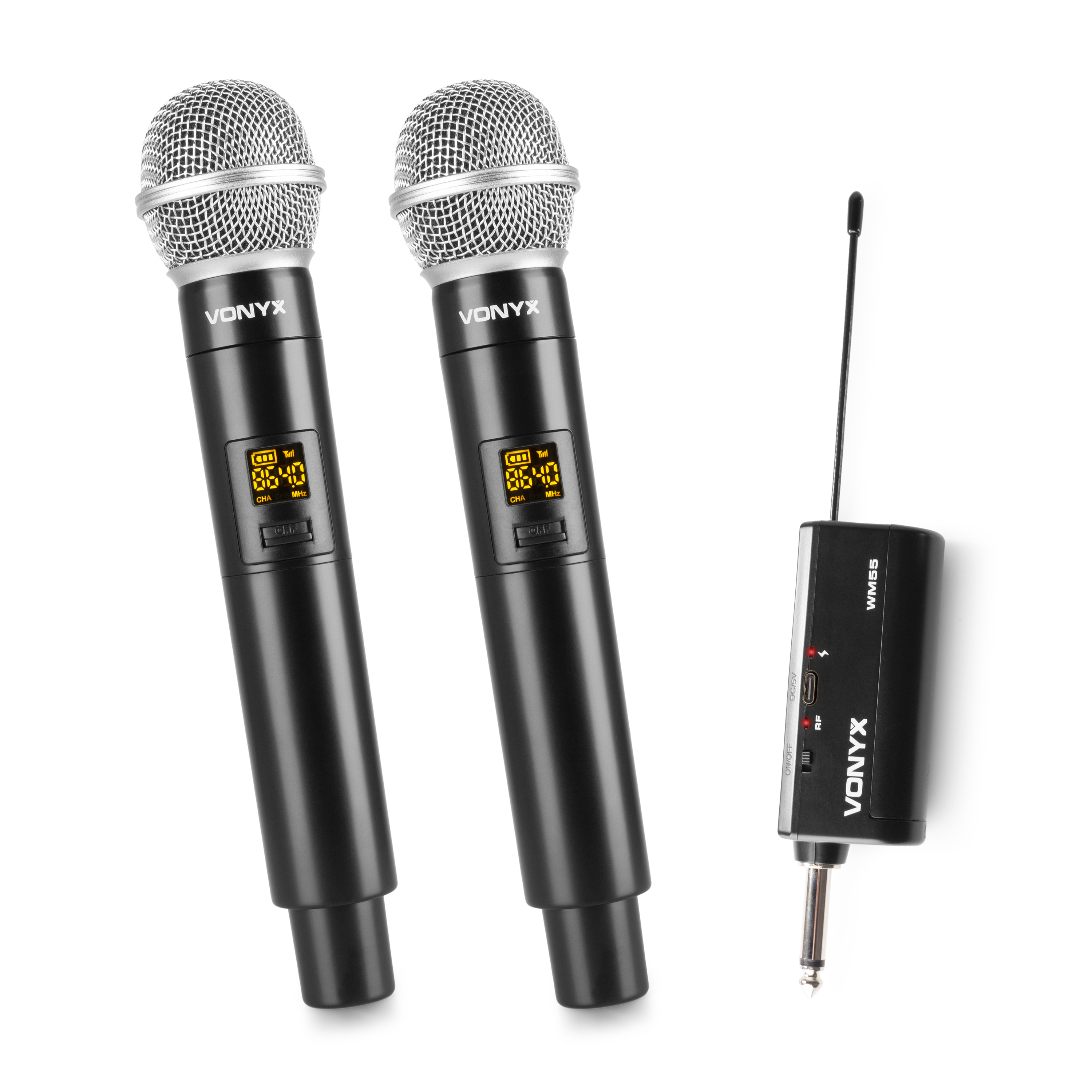 - Handheld microphones are battery operated (2x 1.5V/AA, incl.)