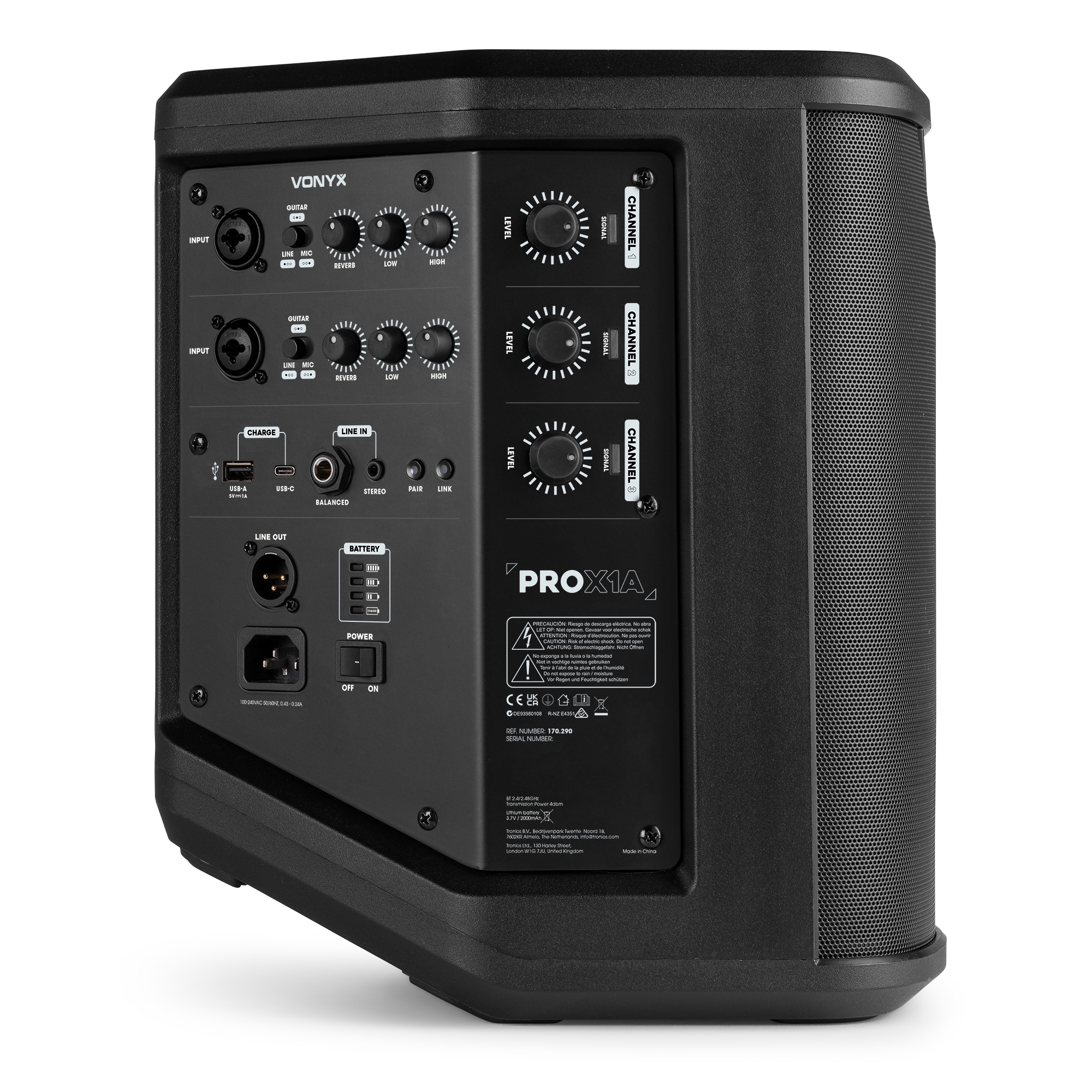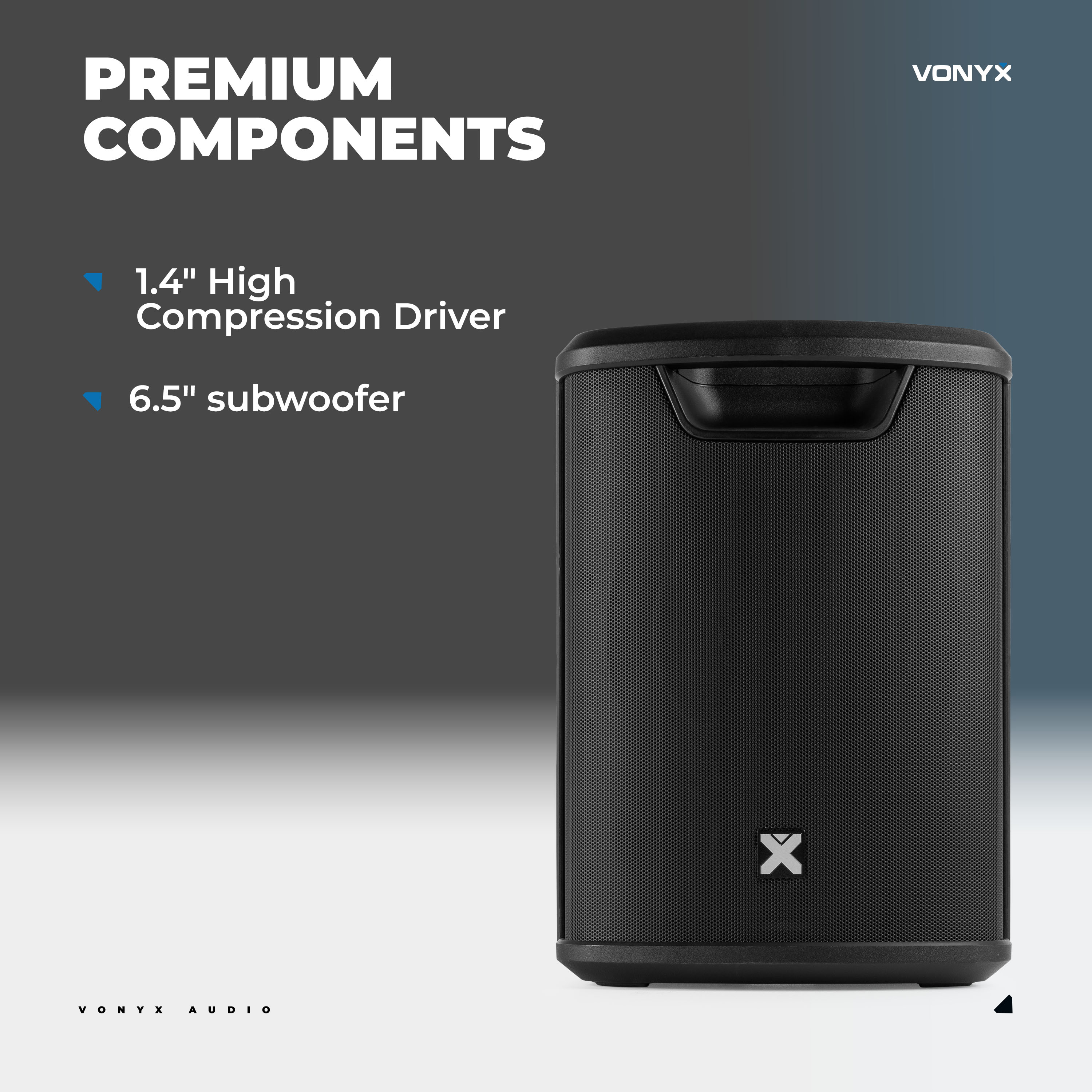 Despite its compact size, the Pro X1A packs a punch. A 2-way speaker system with a high quality woofer and high-frequency driver ensures clear mids, deep bass, and sparkling highs—perfect for music playback, vocals, or announcements.