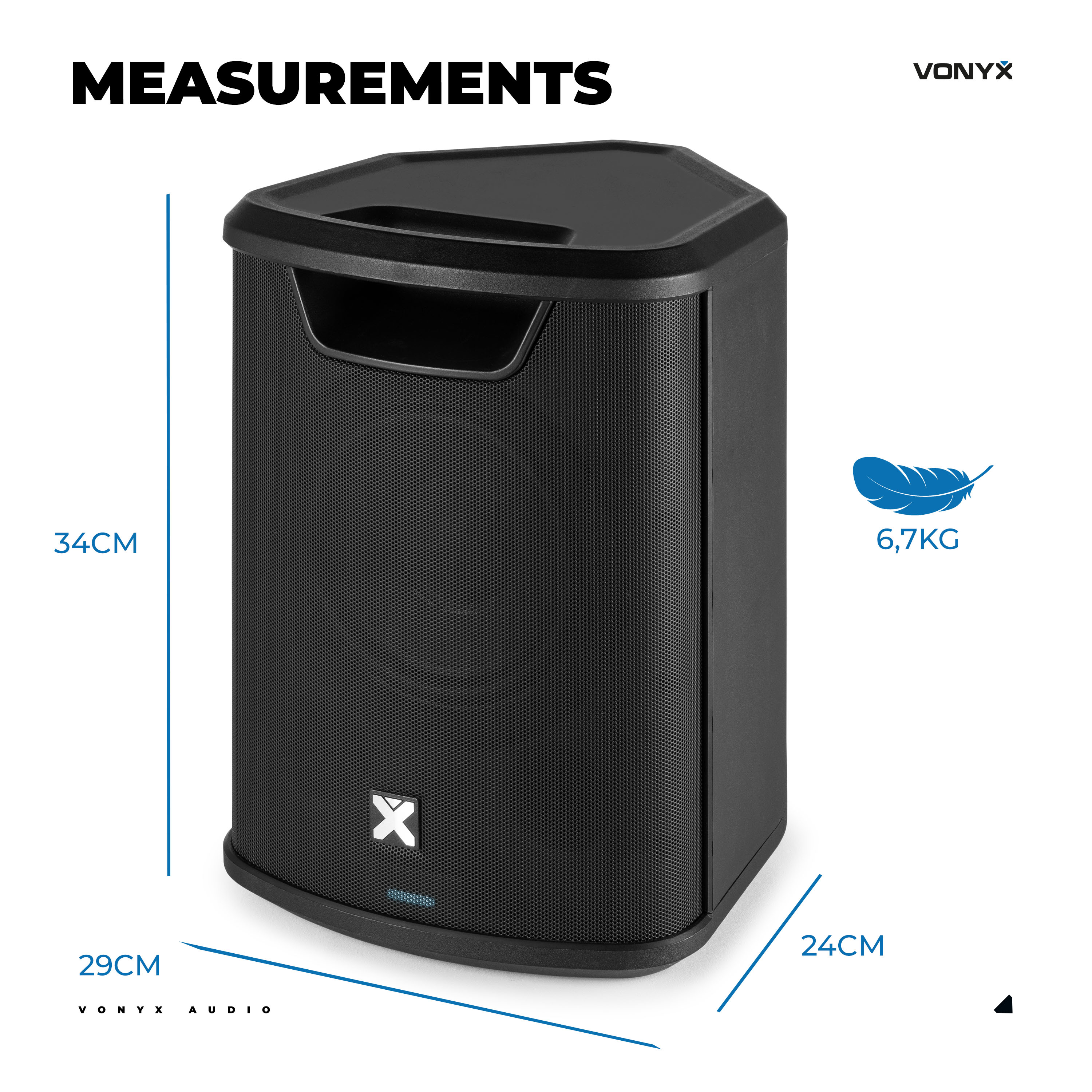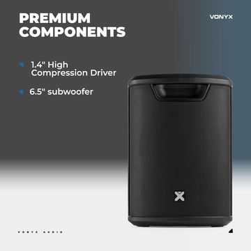 The Vonyx Pro X1A is a compact, all-in-one portable speaker system designed for musicians, DJs, presenters, and performers on the go. With 250 watts of power, wireless connectivity, a built-in mixer, and a long-lasting rechargeable battery, the Pro X1A delivers professional-grade sound—anytime, anywhere.
