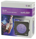 This SL-UV light effect is designed to produce traditional UV at a 25 degree angle. It is small in size and has very low power consumption. The on-board, easy-to-use menu functions include: brightness setting, fade in and out, sound-to-light strobe and sound-to-light pulse. This simple effect is ideal for UV parties, installations in nightclubs, and for verifying ID and money.