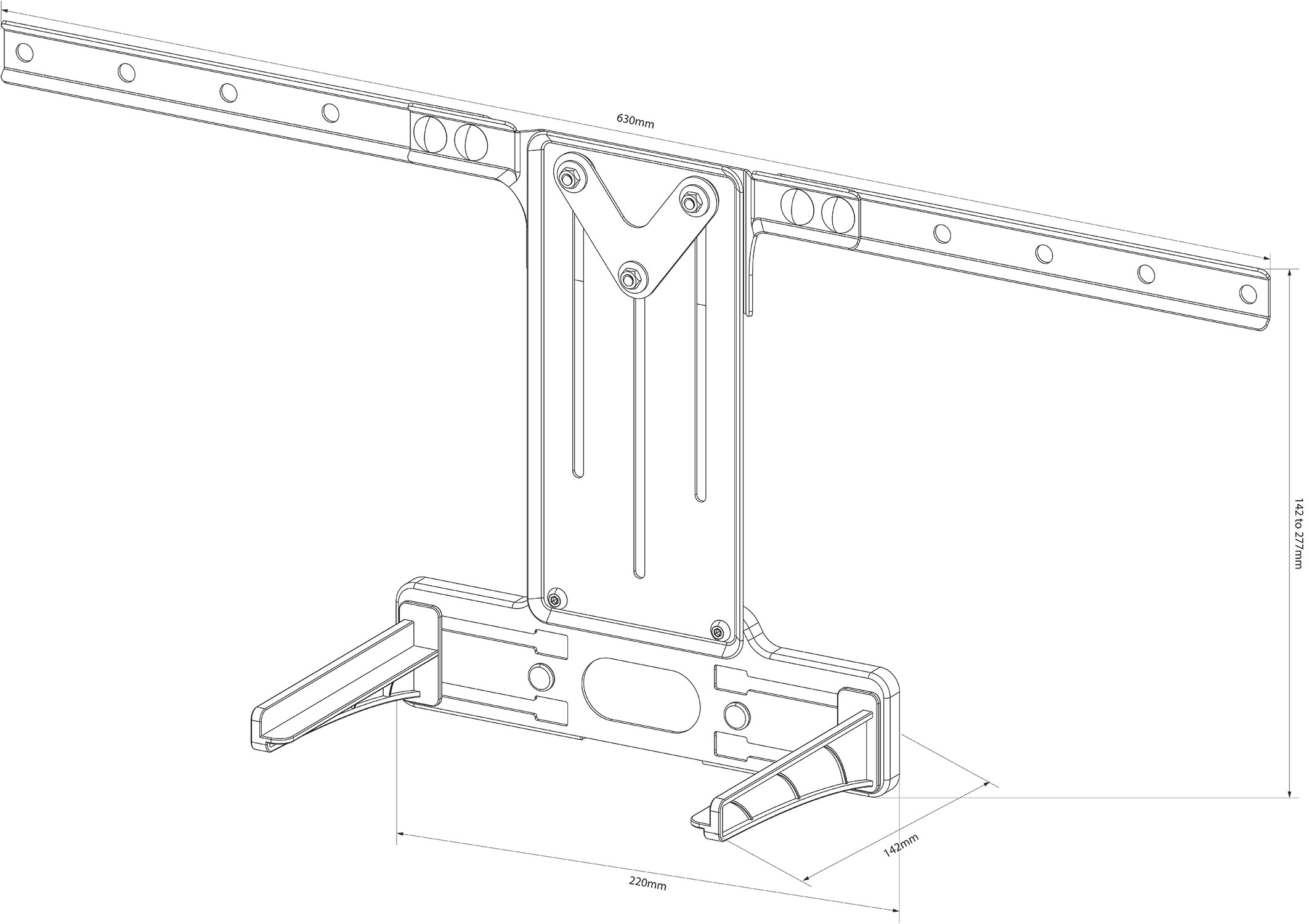 - Bracket dimensions630 x 277 x 142mm